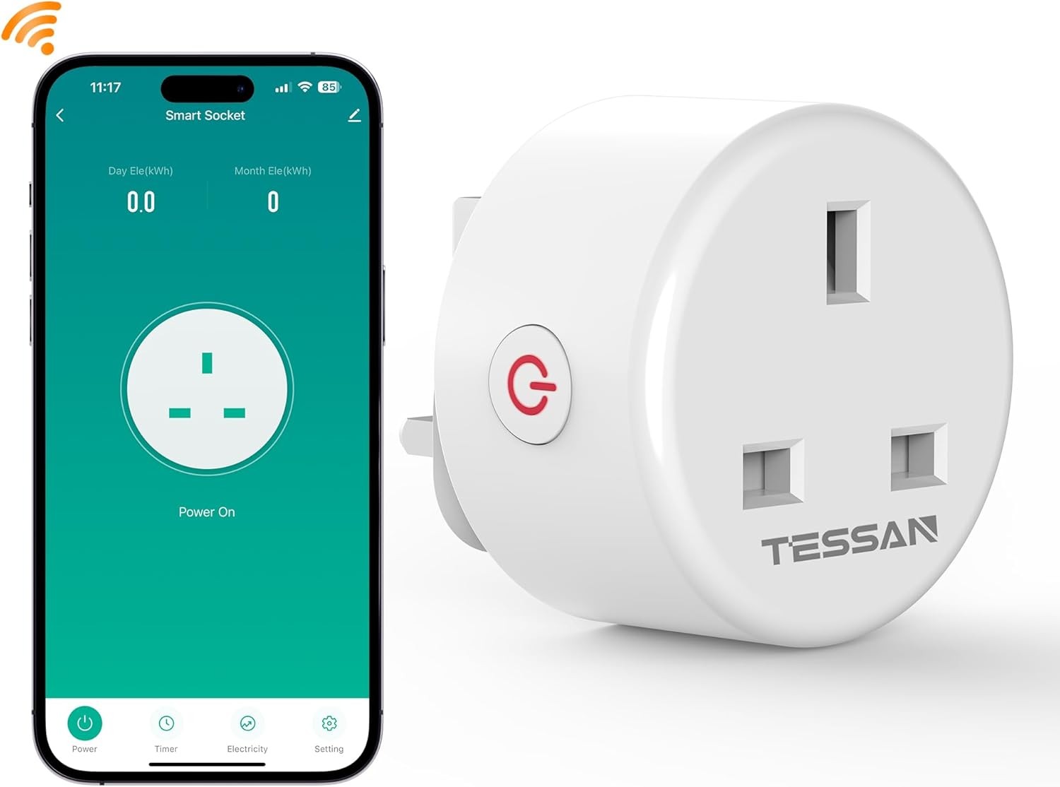 Smart Plug Timer, TESSAN Wifi Plug that Work with Alexa, Energy Monitoring, Voice Control, WiFi APP Wireless Remote Control, Timer Function, Surge Protection, 2,4GHz Wi-Fi, 13A