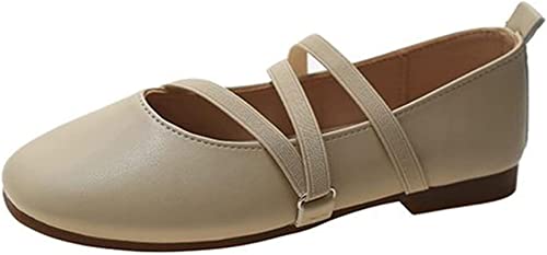 Yiozoi Women's Casual Shoes Casual Shoes Wild Card Daily Walking Soft Ballet Flats Elastic Mary Janes Shoes Work Office Wear Out, Beige, 6.5 US