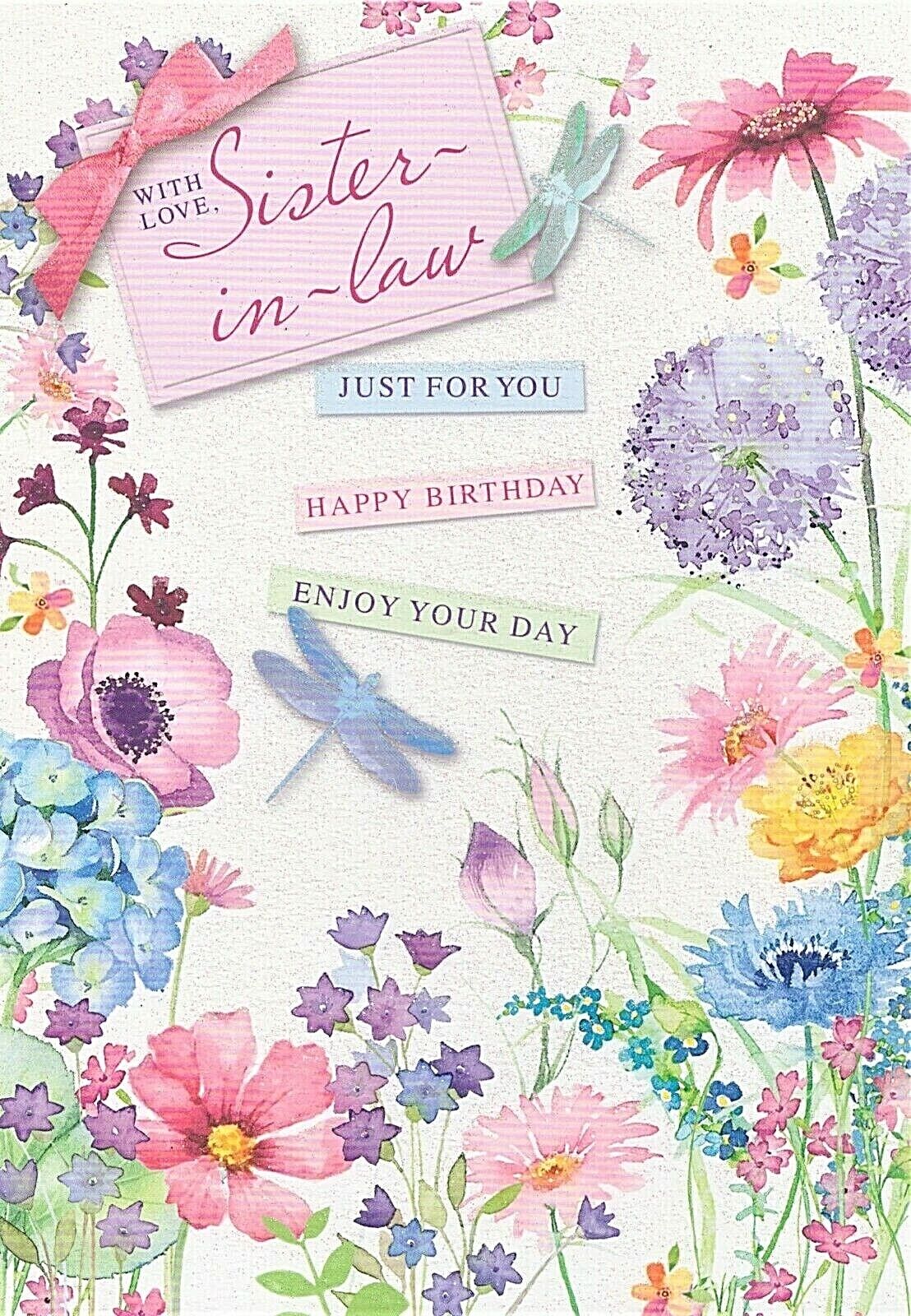 SISTER-IN-LAW INLAW HAPPY BIRTHDAY CARD Wild Flowers Embossed Glitter Free P&P