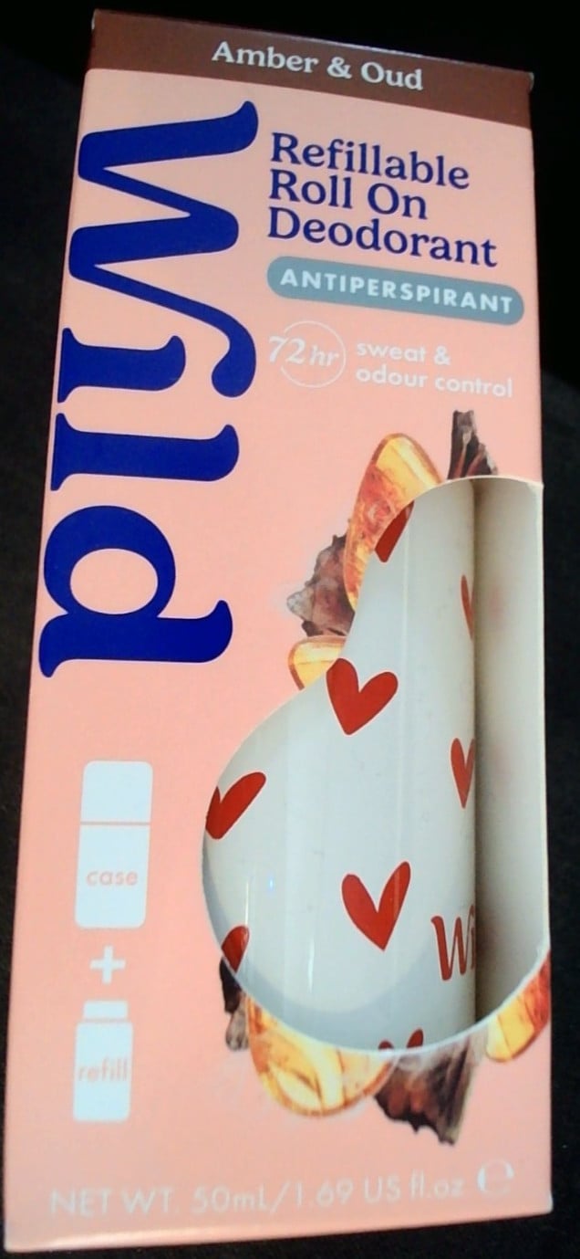Wild Refillable Roll On Deodorant / Antiperspirant. Amber & Oud. Case & Refill.