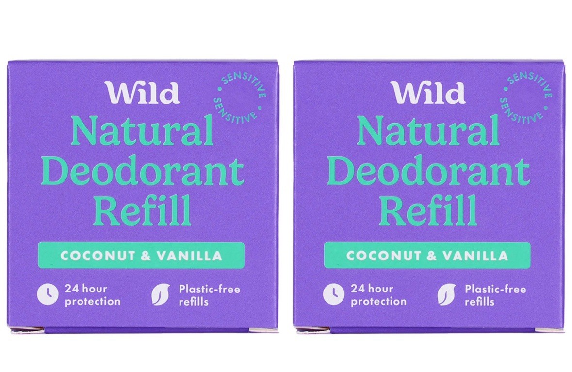 WILD Coconut & Vanilla Plastic FREE Natural 24 hour Deodorant Refill 40g-2 Pack