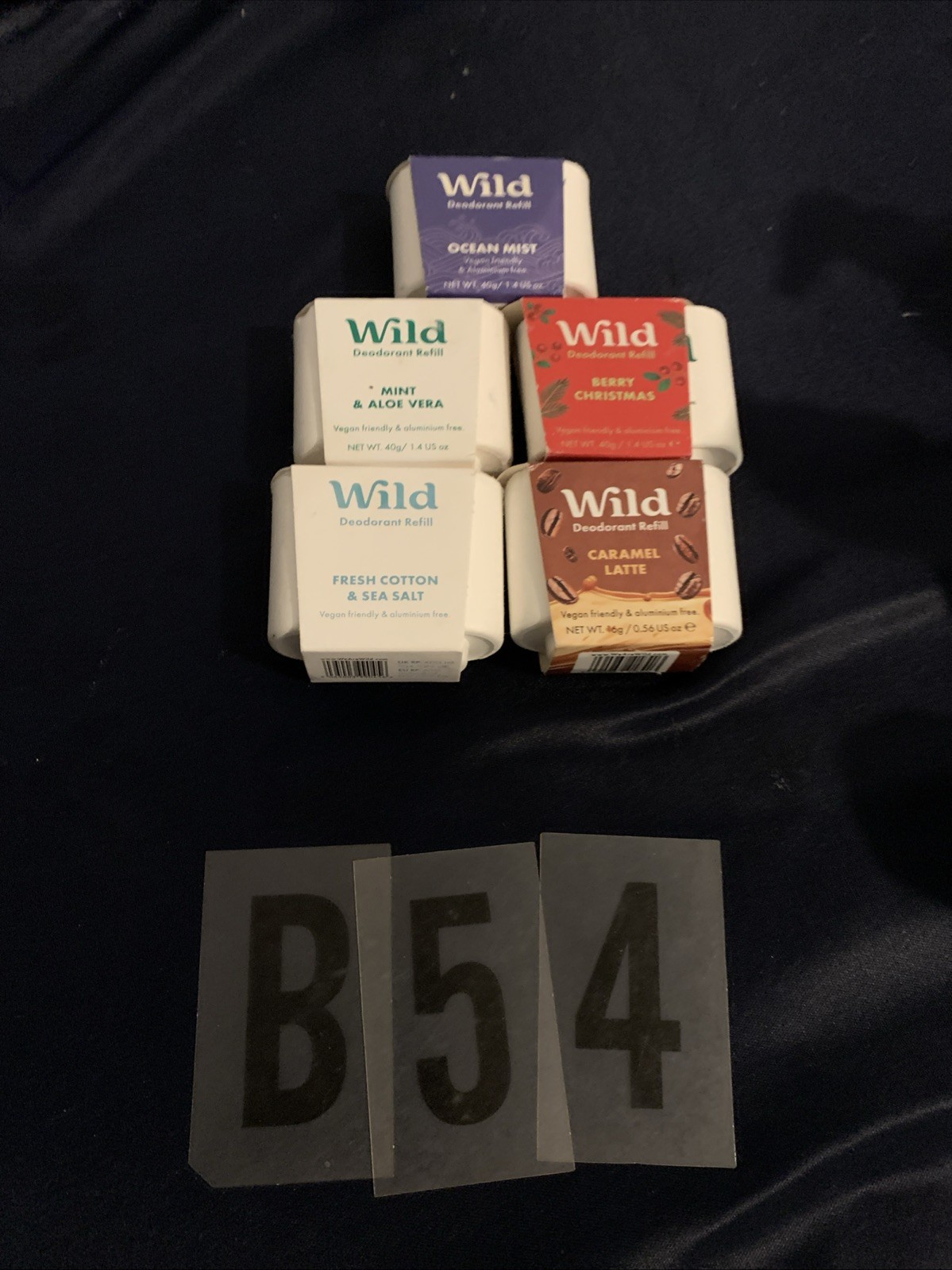 WILD Plastic FREE Natural 24 hour Deodorant Refill 40g-pack of 5 mixed scent