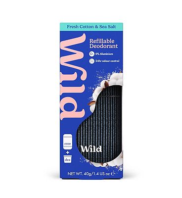 Wild Refillable Natural Deodorant 2 x Case & Refill Fresh Cotton & Sea Salt BNIB