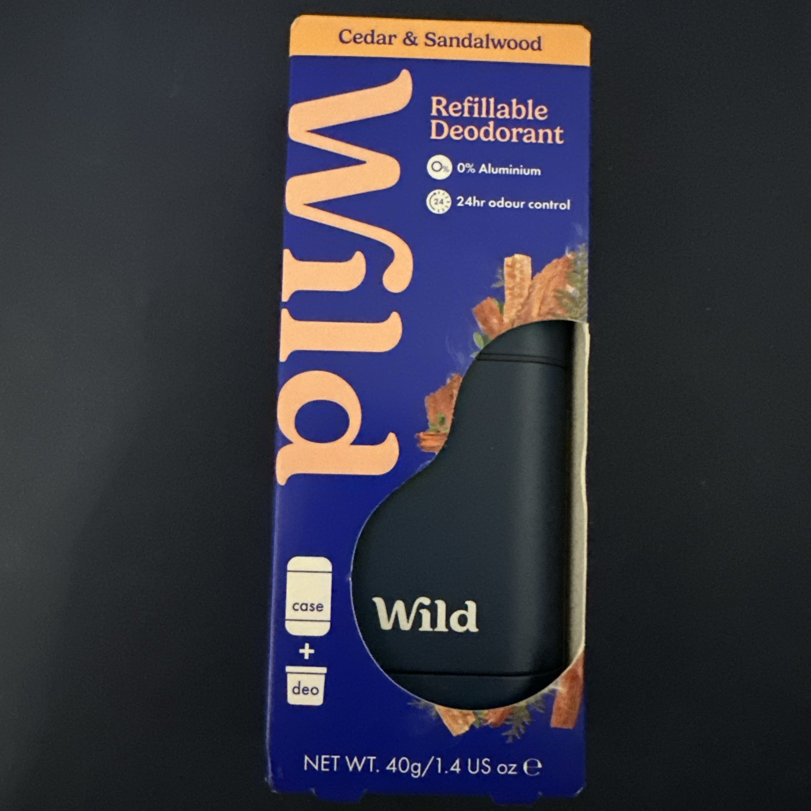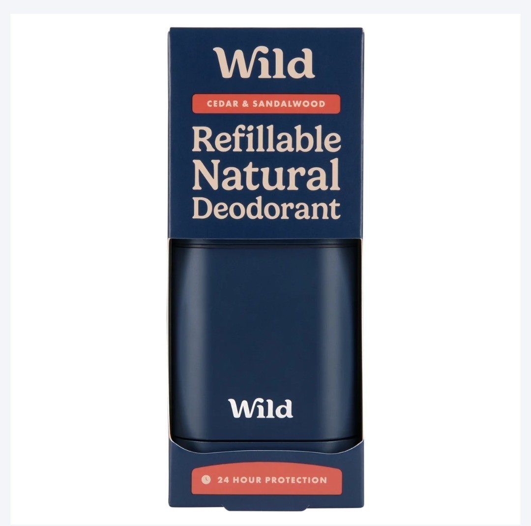 Wild Men's Navy Case and Cedar & Sandalwood Deodorant Refill 40g - New