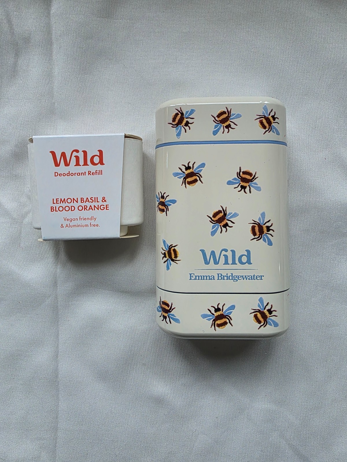Wild Refillable Deodorant Emma Bridgewater Bee Case & Lemon basil Refill New