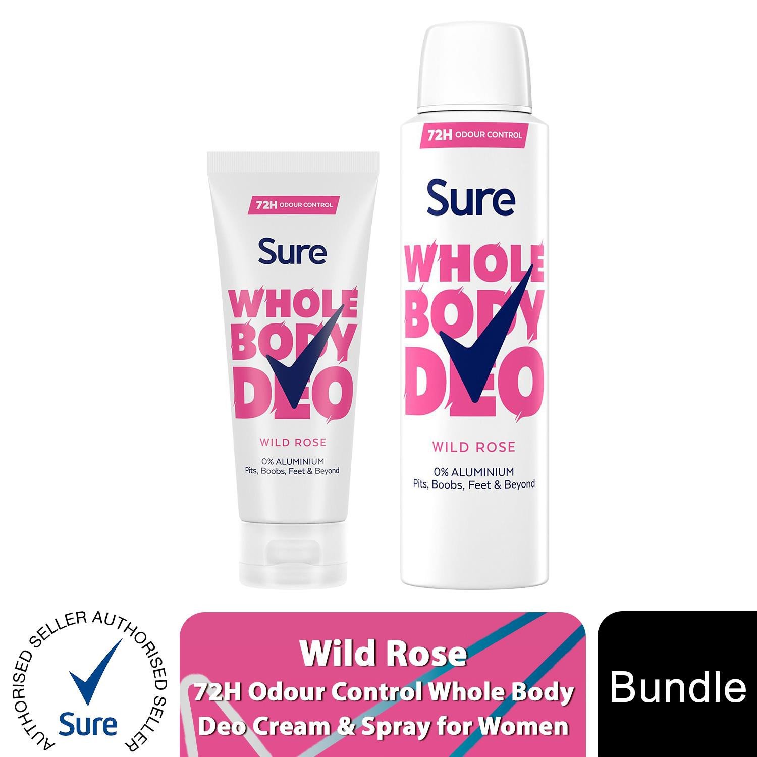 Sure Whole Body Wild Rose Bundle Deodorant Spray&Cream Aluminium Free for Women