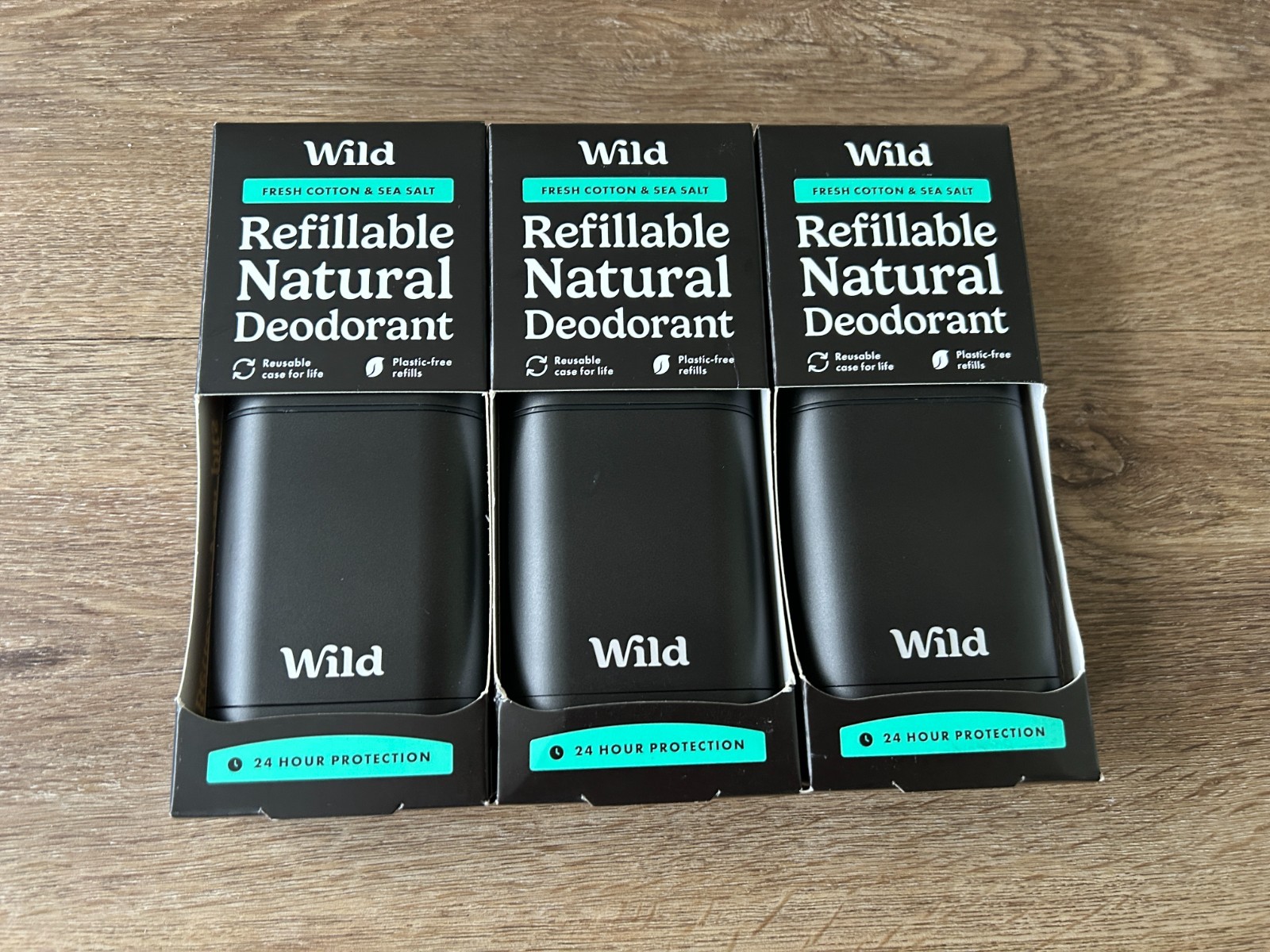 Wild Refillable Natural Deodorant 3 x Case & Refill Fresh Cotton & Sea Salt BNIB