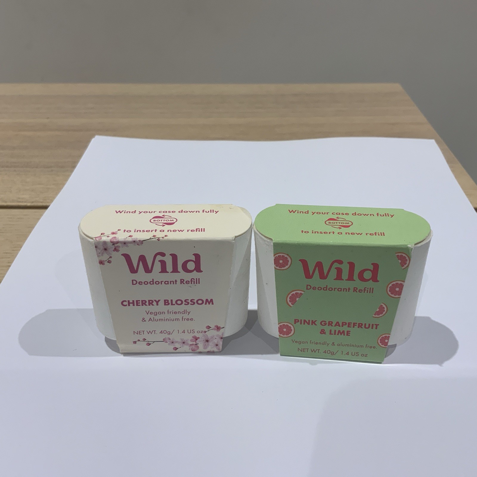 2 X Wild Natural Deodorant Refills - Cherry Blossom & Pink Grapefruit & Lime