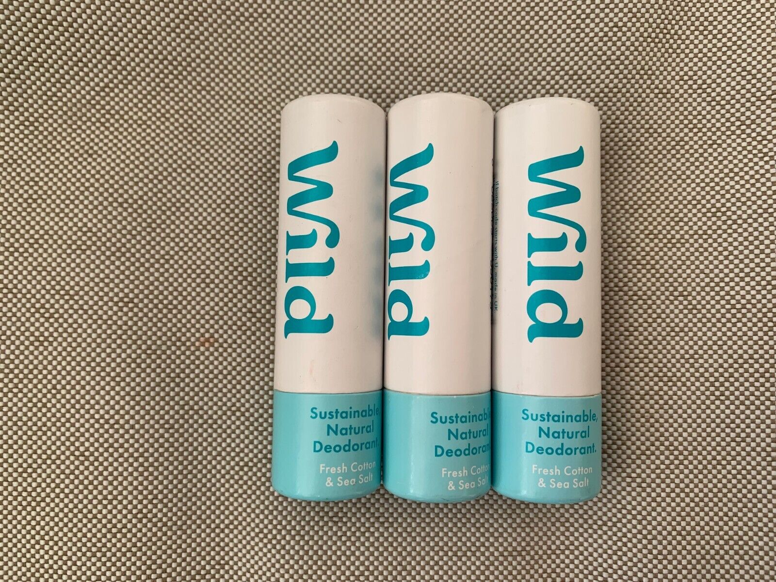 3 x Wild Deodorant Stick Fresh Cotton & Sea Salt 17g Travel Size FREEPOST