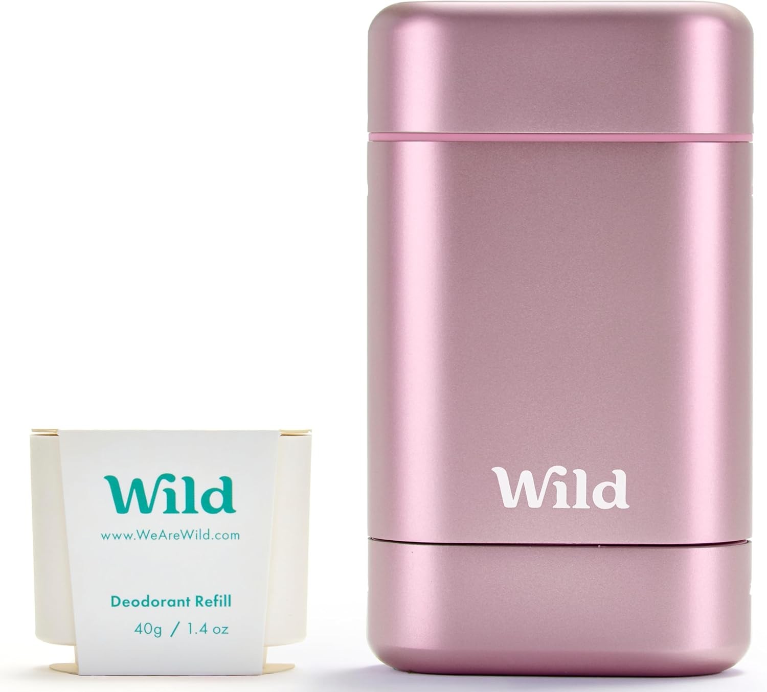 Wild - Natural Refillable Deodorant Starter Kit with Pink Case and Fresh Cotton