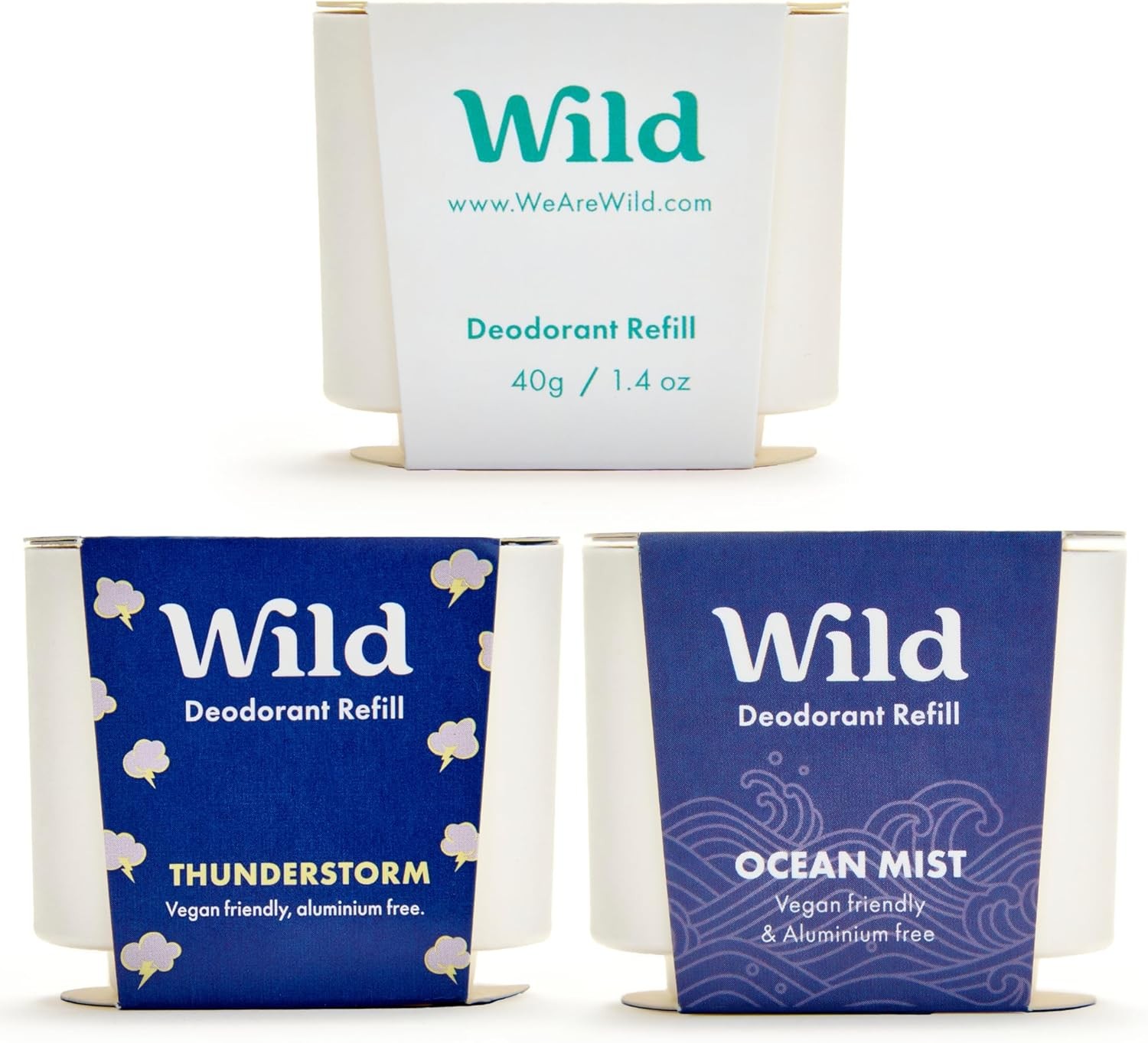 Wild - Natural Refillable Deodorant - Fresh Cotton & Sea Salt Refill Trio Pack