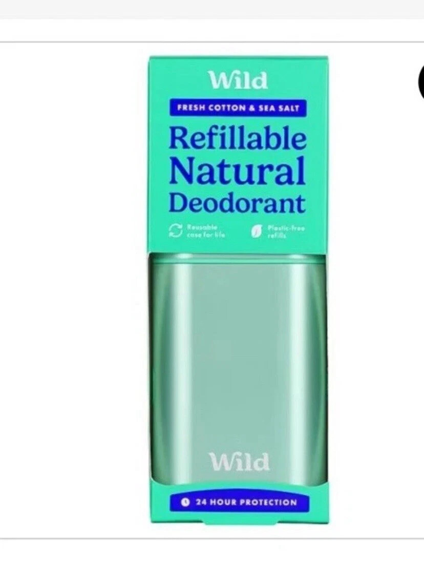 Wild - Natural Refillable Deodorant - Aluminium Free - Aqua Case with 3 x Fresh Cotton & Sea Salt Refill (40g) - Vegan & Eco-Friendly - Long Lasting Protection - Natural Ingredients - Starter Kit