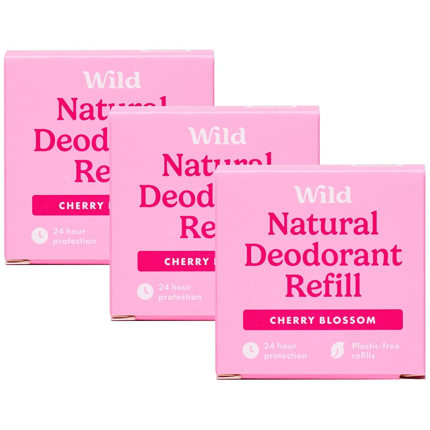 Wild Refill Deodorant Block - Cherry Blossom 40g (Pack of 3)