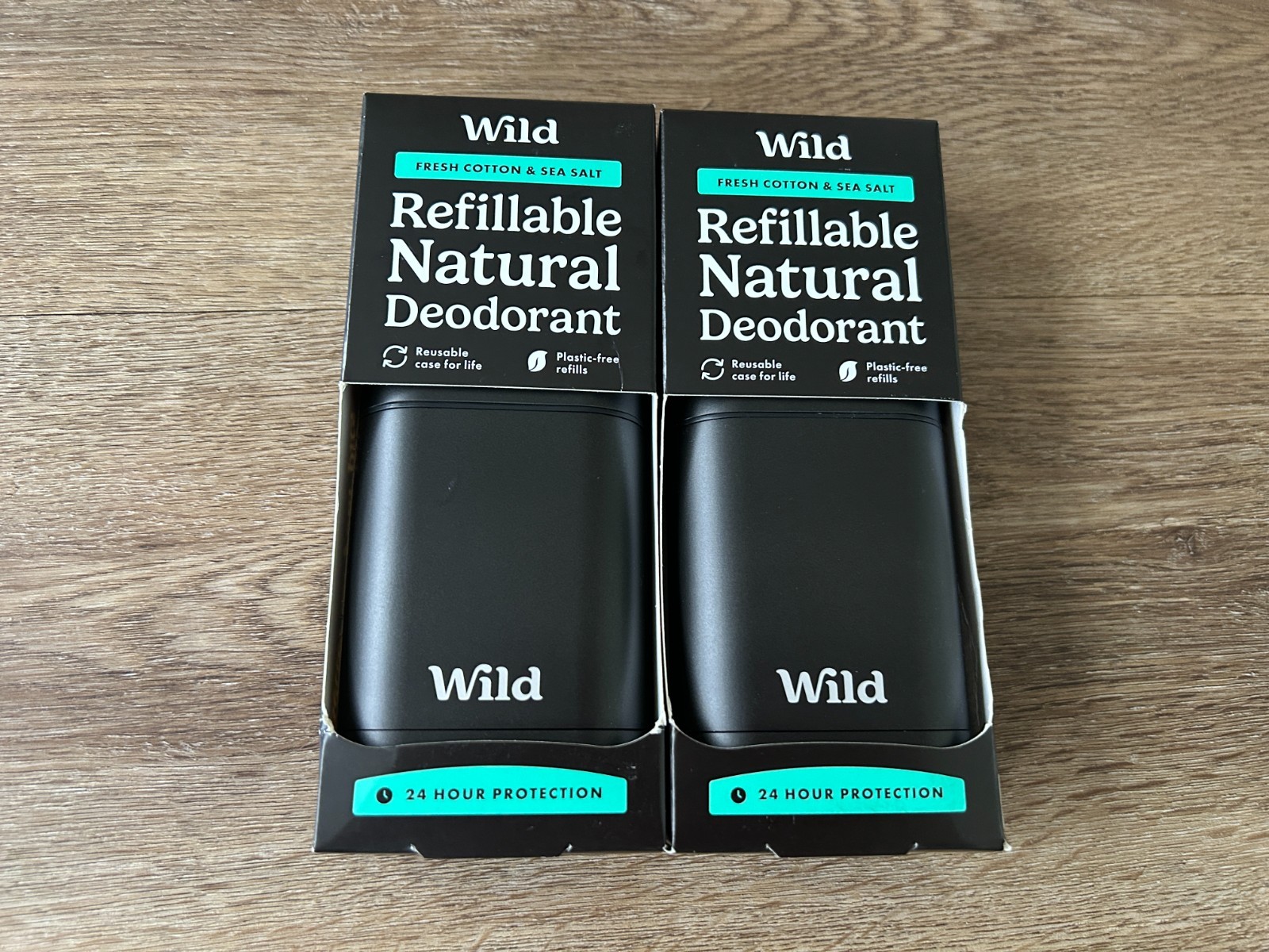 Wild Refillable Natural Deodorant 2 x Case & Refill Fresh Cotton & Sea Salt BNIB