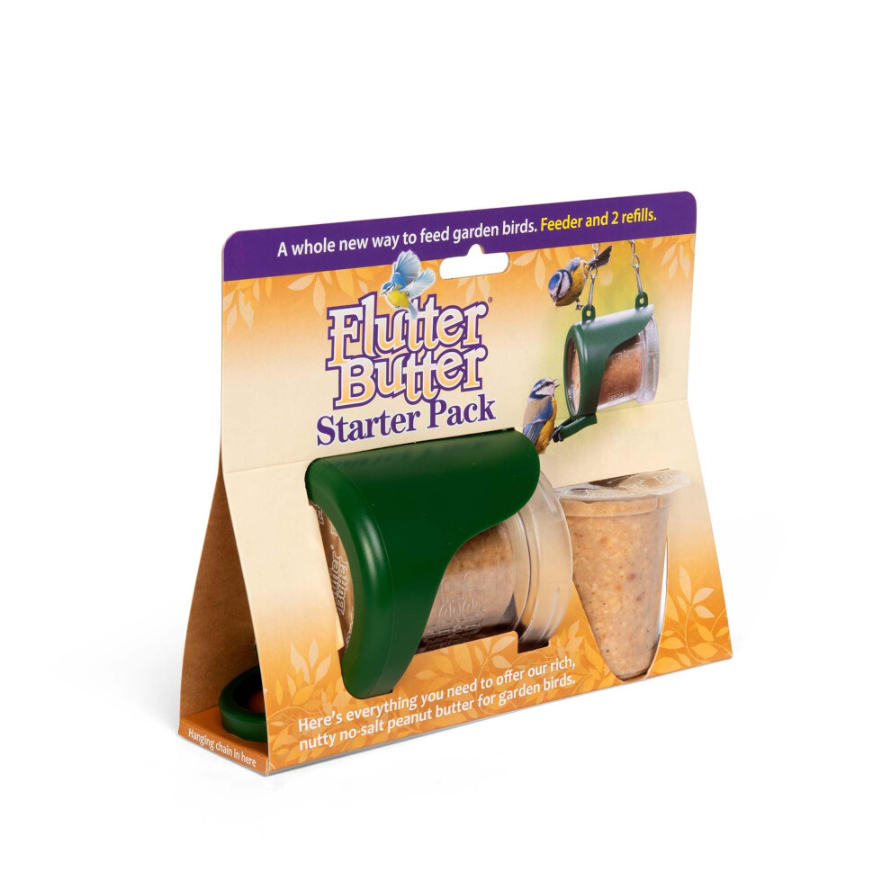 Flutter Butter Starter Pack with 2 Flutter Butter Refills - Peanut Butter for Birds Wild Bird Food - Small Bird Feeder Helps Attract More Birds to