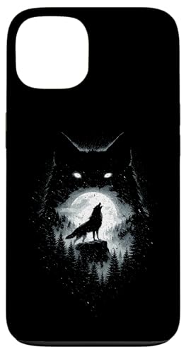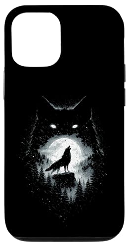 Wild Wolf Howling at Full Moon Forest Silhouette Grunge Art Case for iPhone 13