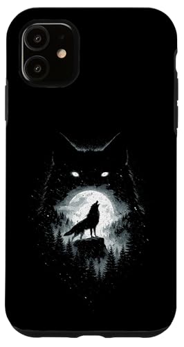 Wild Wolf Howling at Full Moon Forest Silhouette Grunge Art Case for iPhone 11