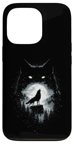 Wild Wolf Howling at Full Moon Forest Silhouette Grunge Art Case for iPhone 13 Pro Max