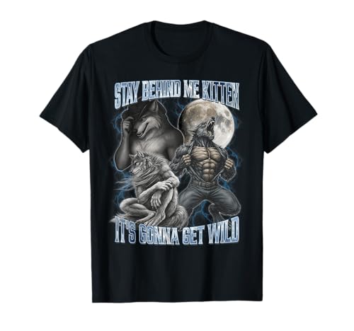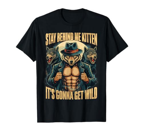 Stay Behind Me Kitten It's Gonna Get Wild Alpha Wolf Meme T-Shirt