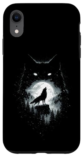 Wild Wolf Howling at Full Moon Forest Silhouette Grunge Art Case for iPhone XR
