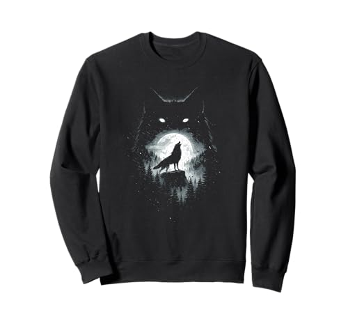 Wild Wolf Howling at Full Moon Forest Silhouette Grunge Art Sweatshirt