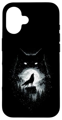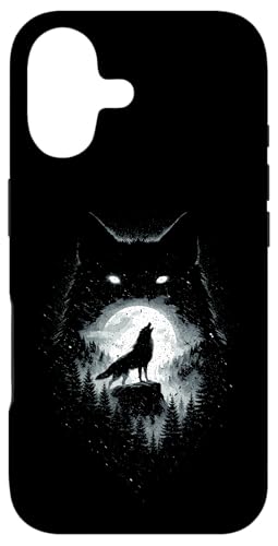 Wild Wolf Howling at Full Moon Forest Silhouette Grunge Art Case for iPhone 16 Plus