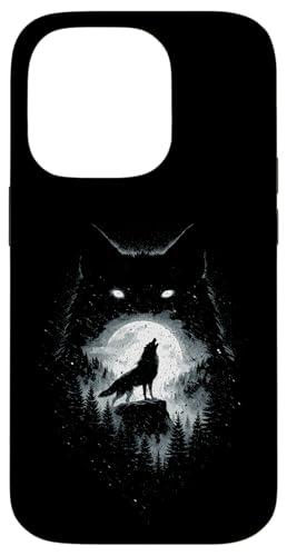 Wild Wolf Howling at Full Moon Forest Silhouette Grunge Art Case for iPhone 14 Pro