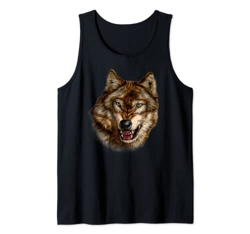 Native American Wolf Lover Wild Brown Wolf Portrait Art Tank Top