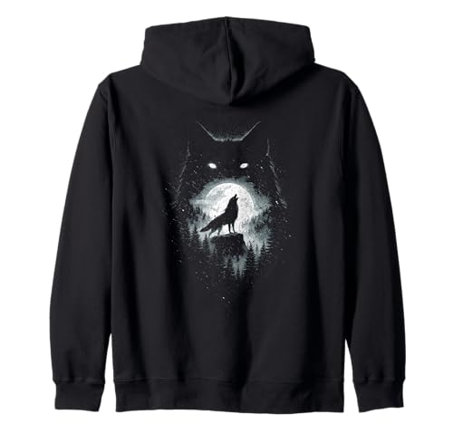 Wild Wolf Howling at Full Moon Forest Silhouette Grunge Art Zip Hoodie