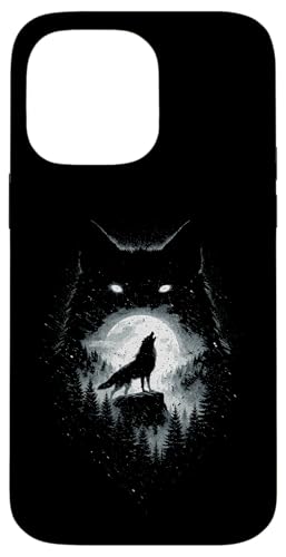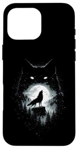 Wild Wolf Howling at Full Moon Forest Silhouette Grunge Art Case for iPhone 16 Pro Max