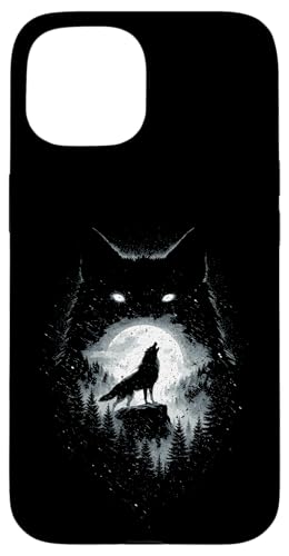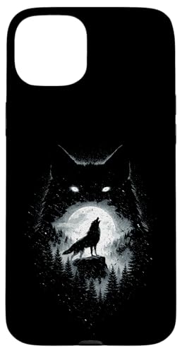 Wild Wolf Howling at Full Moon Forest Silhouette Grunge Art Case for iPhone 15 Plus