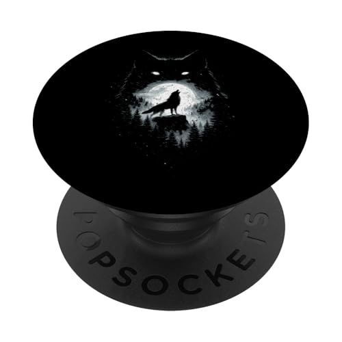 Wild Wolf Howling at Full Moon Forest Silhouette Grunge Art PopSockets Adhesive PopGrip