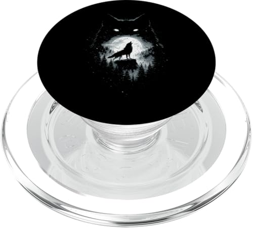 Wild Wolf Howling at Full Moon Forest Silhouette Grunge Art PopSockets PopGrip for MagSafe
