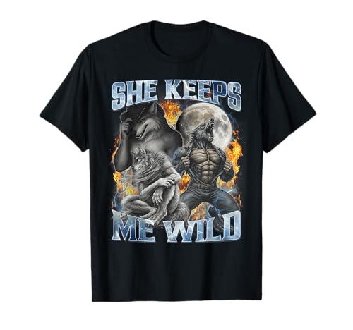 She Keeps me Wild Funny Alpha Wolf Werewolf Bootleg Meme T-Shirt