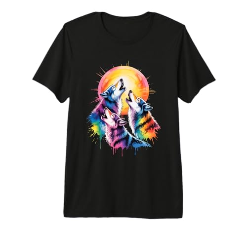 Wild Wolf Howling at Full Moon Forest Silhouette Grunge Art Premium T-Shirt