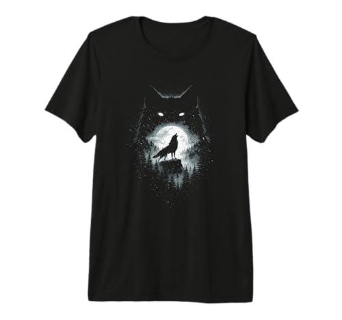 Moonlit Wolf Wild Nature Explorer Scene Premium T-Shirt
