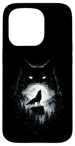 Wild Wolf Howling at Full Moon Forest Silhouette Grunge Art Case for iPhone 15 Pro