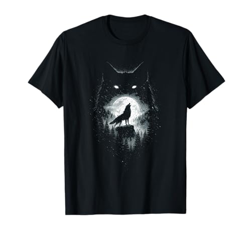 Wild Wolf Howling at Full Moon Forest Silhouette Grunge Art T-Shirt