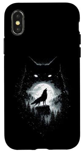 Wild Wolf Howling at Full Moon Forest Silhouette Grunge Art Case for iPhone XS Max