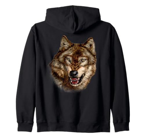 Native American Wolf Lover Wild Brown Wolf Portrait Art Zip Hoodie