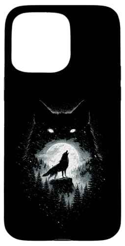 Wild Wolf Howling at Full Moon Forest Silhouette Grunge Art Case for iPhone 15 Pro Max
