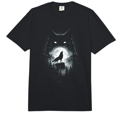 Wild Wolf Howling at Full Moon Forest Silhouette Grunge Art Comfort Colors Adult Heavyweight T-Shirt