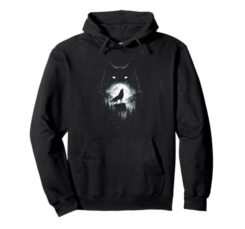 Wild Wolf Howling at Full Moon Forest Silhouette Grunge Art Pullover Hoodie