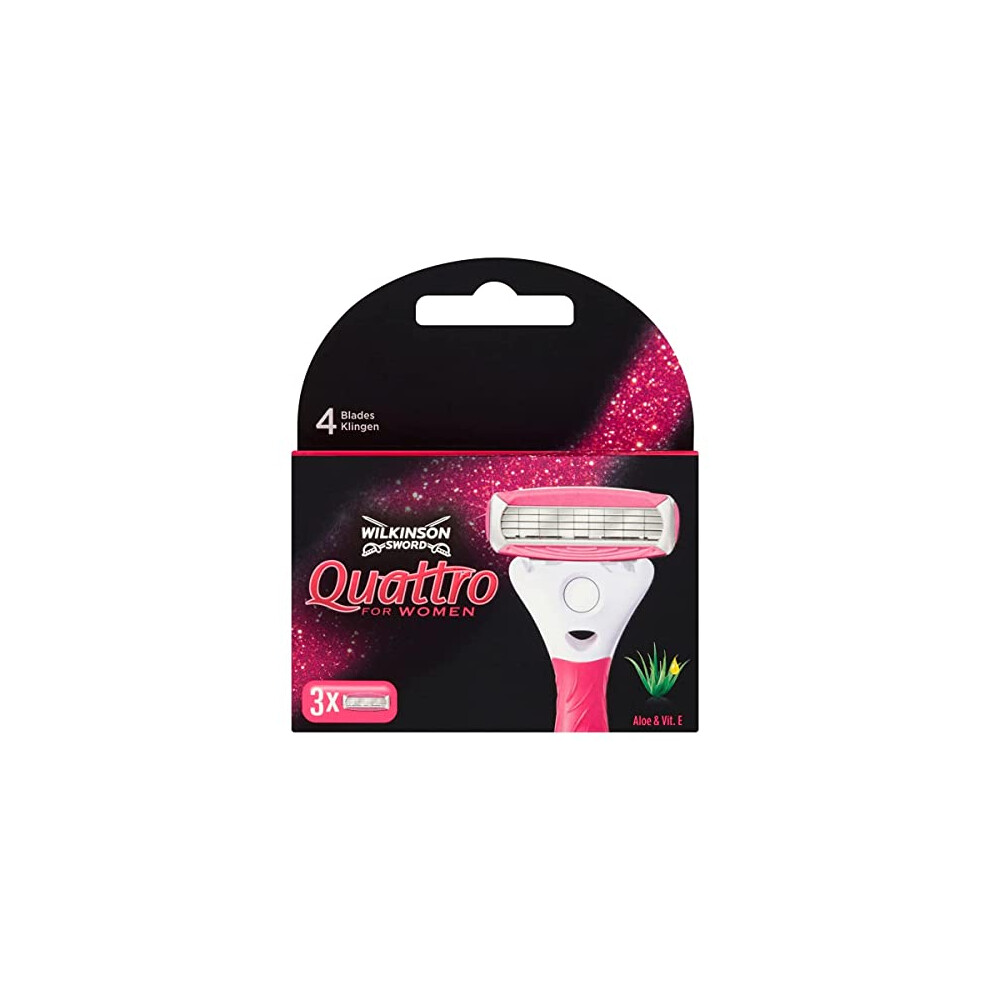 Wilkinson Sword Quattro for Women razor blades for ladies razors, 3 + 1 pieces