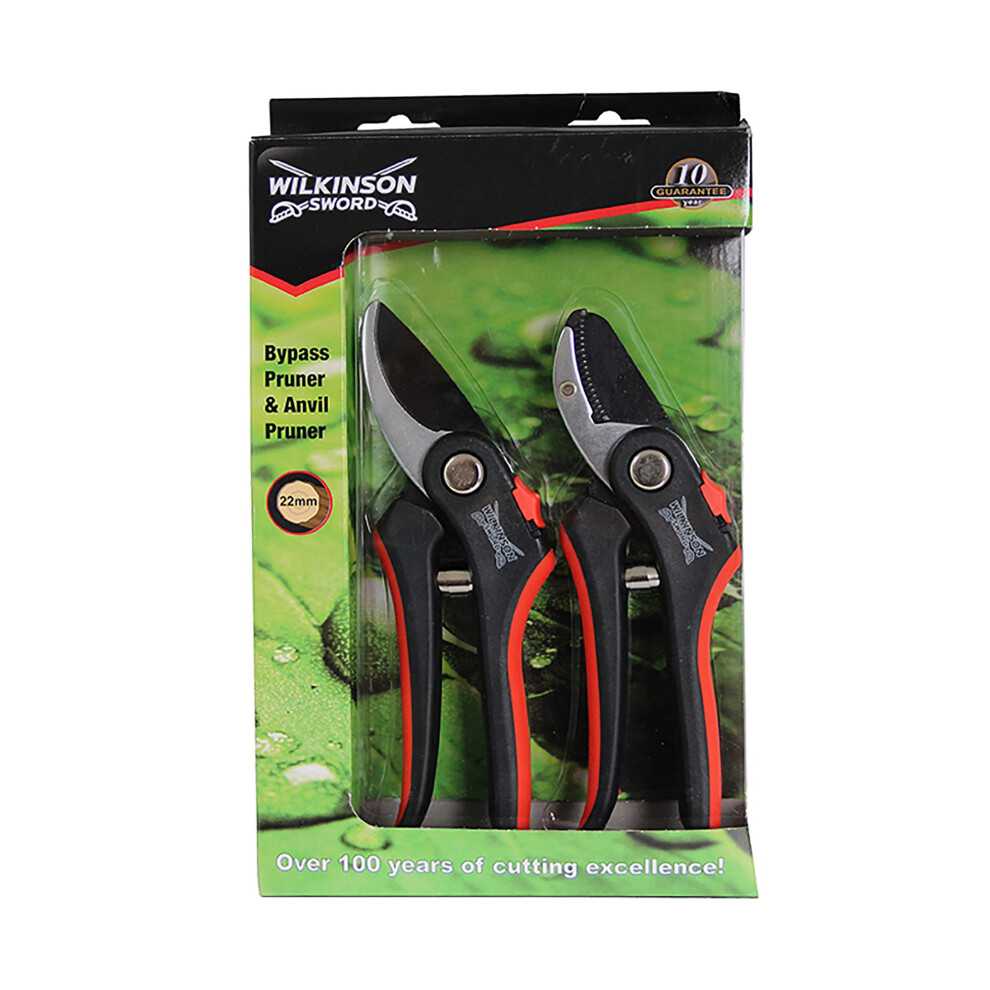 Wilkinson Sword 1111174W Bypass Pruner & Anvil Pruner Secateurs Twin Pack