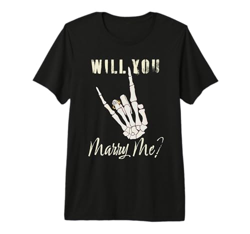 Will You Marry Me? Rock and Roll Skeleton Hand, Diamond Ring Premium T-Shirt