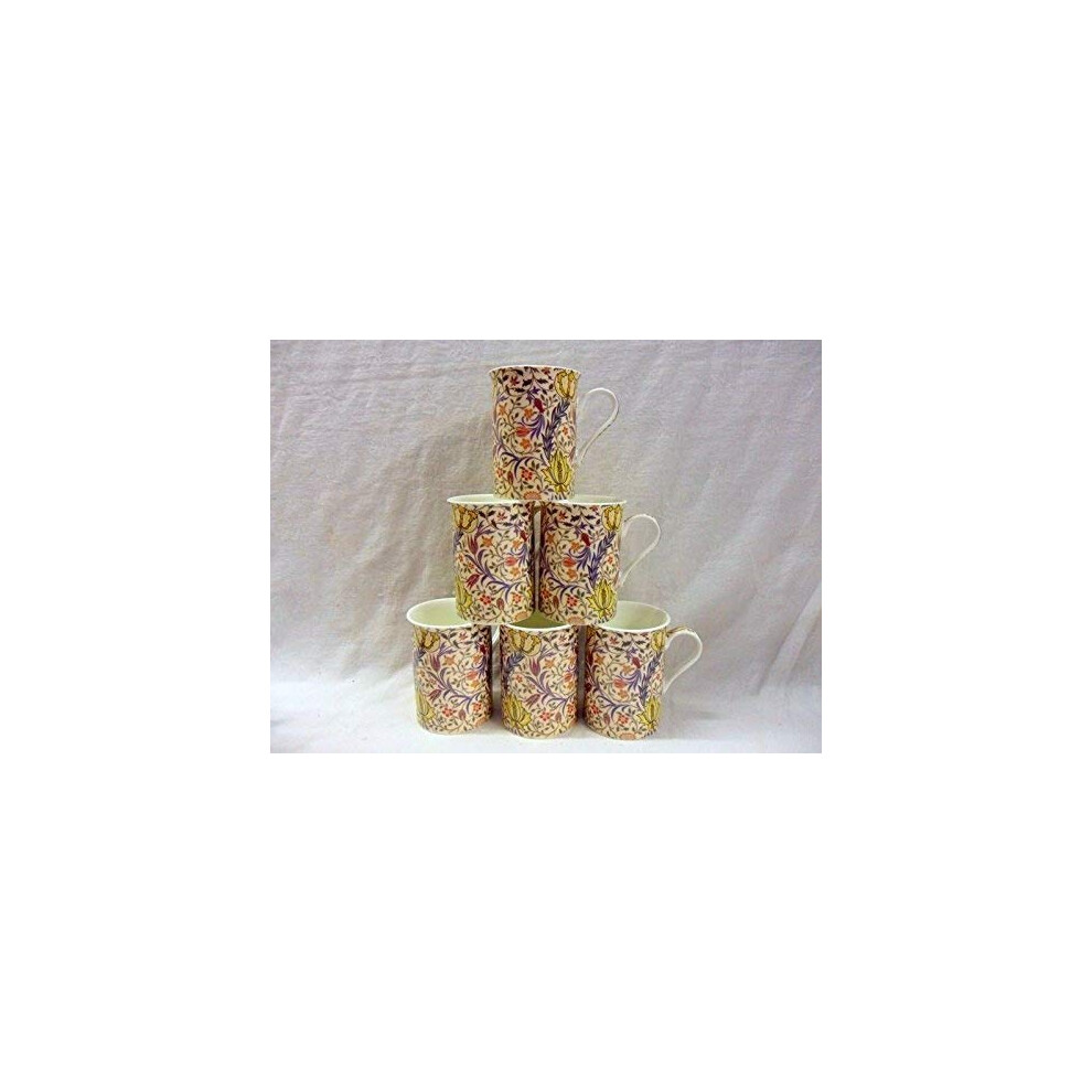 Set of 6 China Mugs in William Morris Flora Design