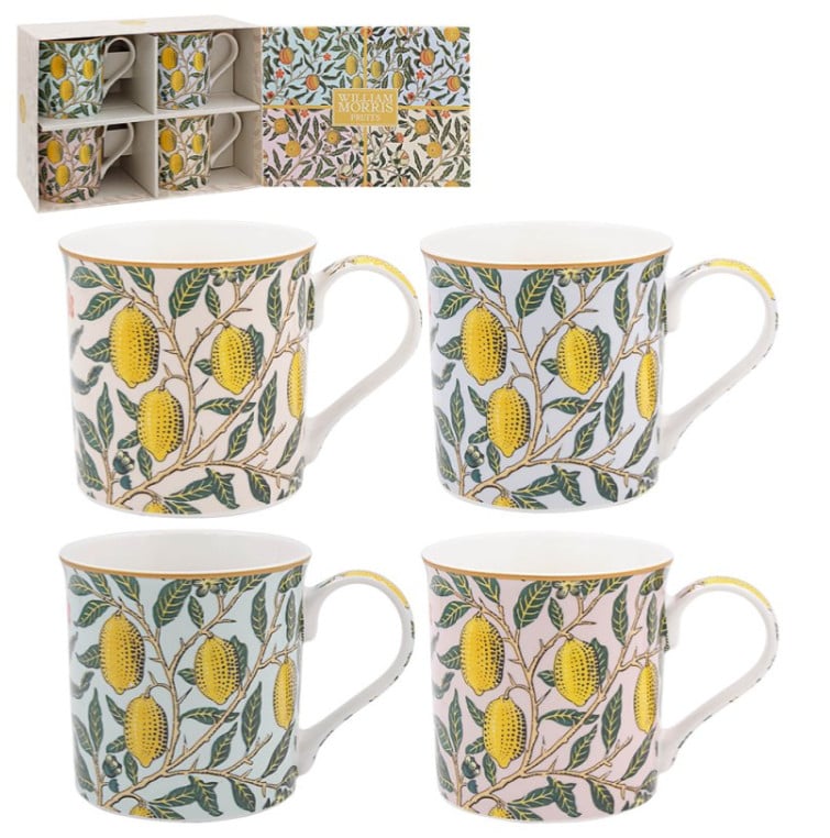William Morris Fruits Mugs Set of 4 – Fine China Gift Boxed Mug Set