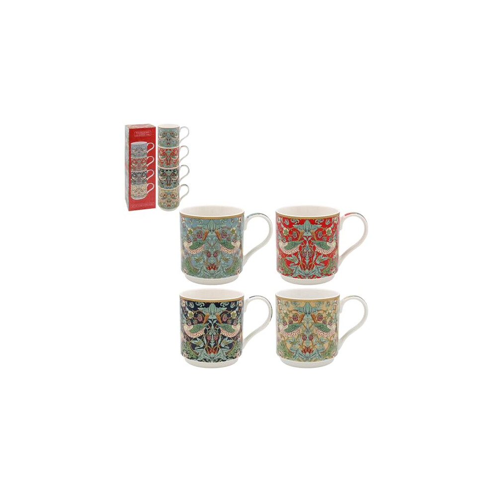 Set of 4 Stacking Mugs - William Morris' Strawberry Thief Design