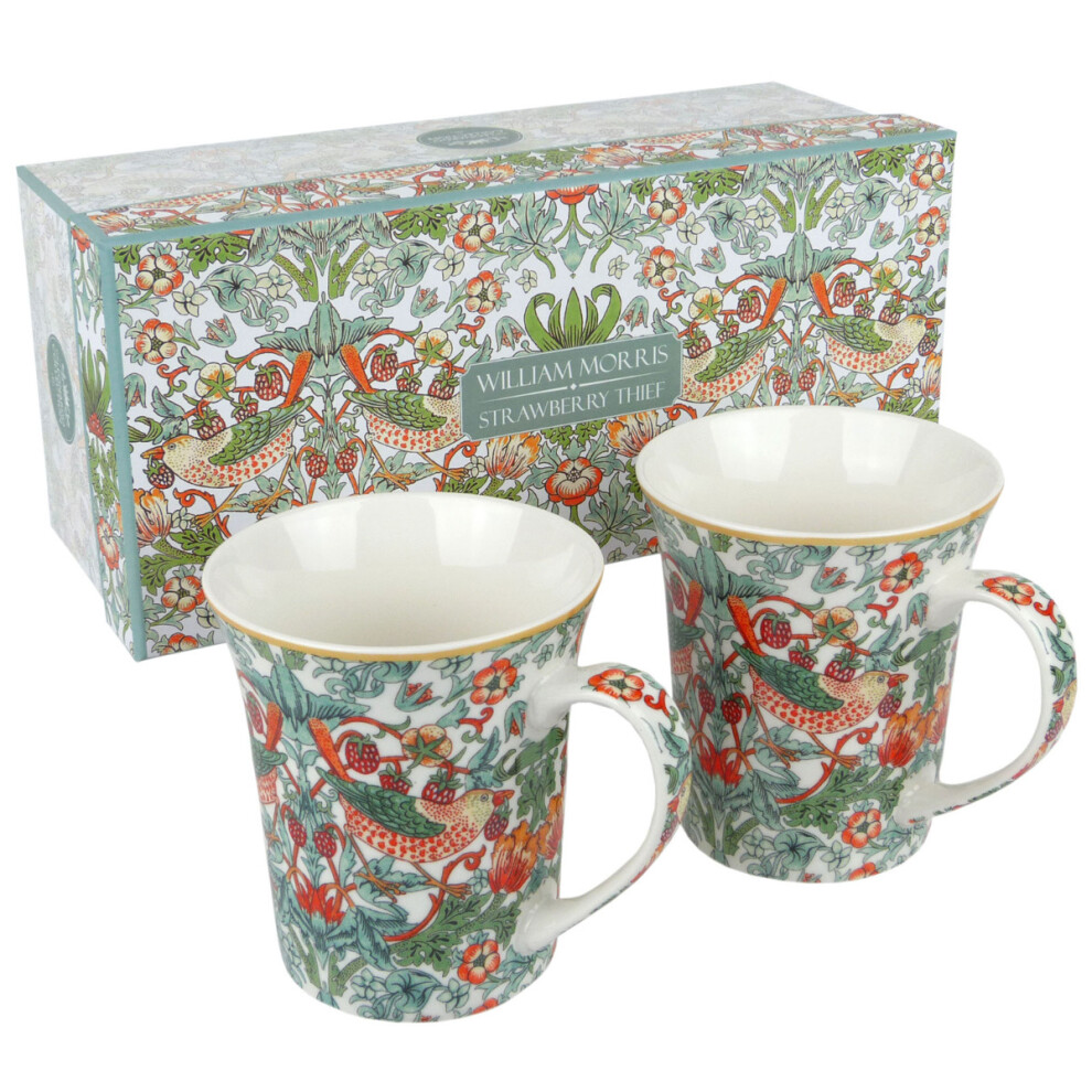 Set of 2 - William Morris Mugs - 2 Assorted Strawberry Thief Design in Gift Box